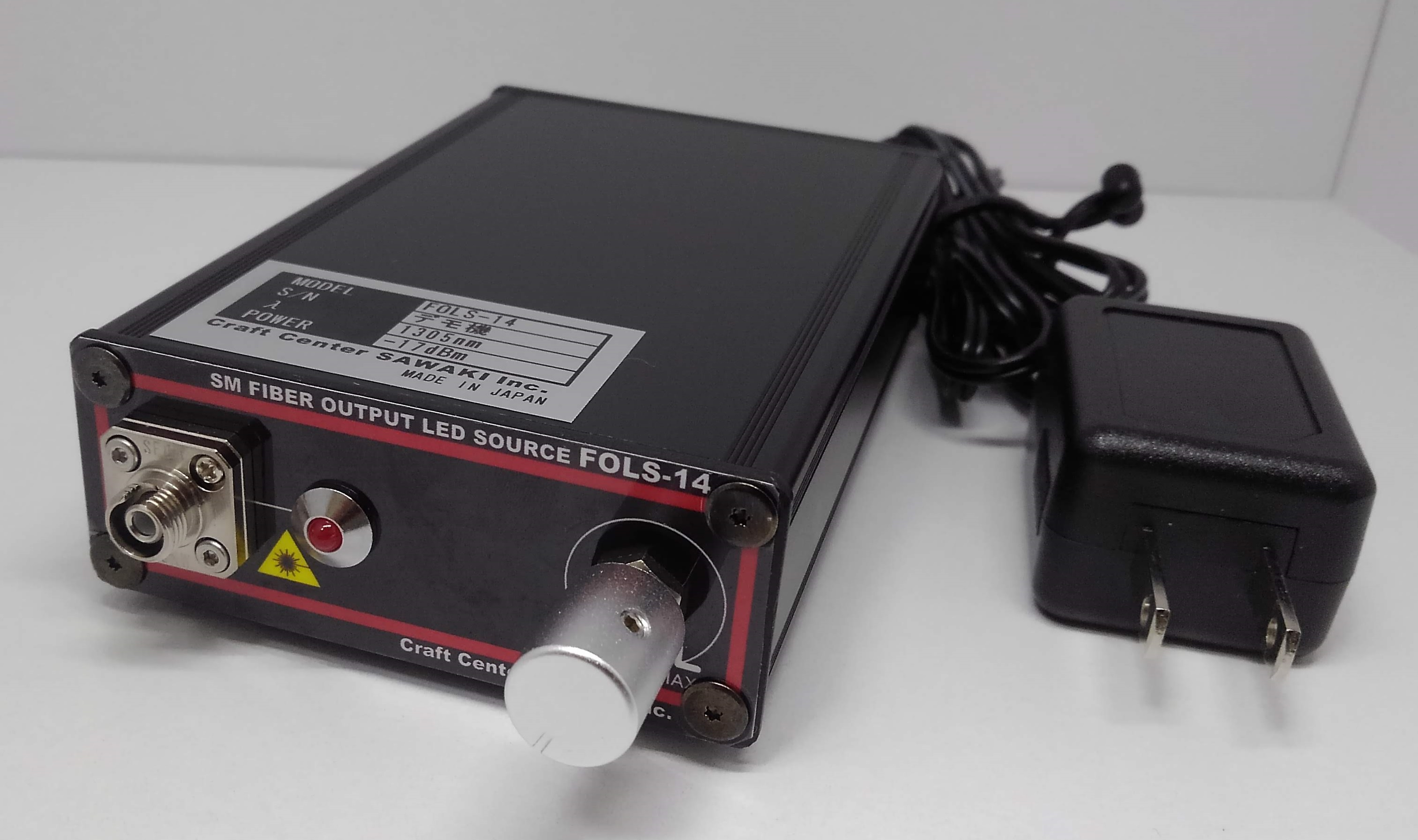 FOLS-14は光通信波長である1.31μmのLED光をSMファイバで出力する小型光源です。 出力FC/PC光コネクタ・LED素子・駆動回路・電源を一体化していますので、電源を投入するだけで、光コネクタ端より直ちにLED光を出力します。 最大光量-20dBmのLED光を±0.01dBの安定度で出力します。 LED光ですので、干渉縞やスペックルを生じることがありません。外部TTLトリガ入力により、ストロボ発光させることも可能です。 |